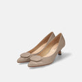 予約:2026SS:オーバルパーツ付き パンプス(m45022)グレージュE