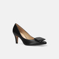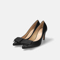予約:2026SS:ダブルリボン サテン パンプス(m72025)ブラックサテン